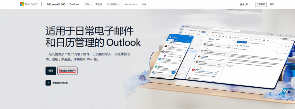 打开微软官网注册outlook邮箱:Microsoft官网