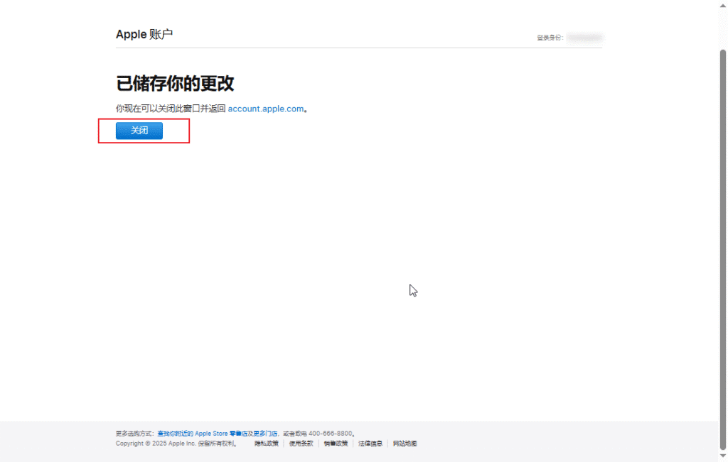 返回 Apple 账户个人信息页面刷新