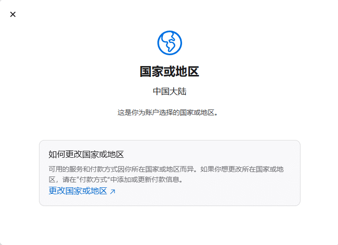点击国家或地区修改